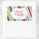 Adesivo Retangular Feliz vermelha & tipografia brilhante com listras