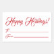 Felizes Feriados, vazio de guião vermelho de Natal para etiquetas elegantes e retangulares brancas