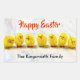 Um grupo de galinhas Páscoas bonitinhas desejando um Felz pascoa.