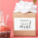 Mostre sua gratidão da maneira mais doce com nossa hortelã "Obrigado por Celebrar Nosso Noivado". Perfeita para festas de noivado, esse refrescante tratamento é uma maneira encantadora de agradecer aos convidados por compartilharem seu momento especial. Cada hortelã é individualmente embrulhada com um rótulo personalizado, apresentando a mensagem sincera "Obrigado por Celebrar Nosso Noivado" ao lado de um toque de elegância, tornando-se um presente atencioso para seus entes queridos. Seja colocada em cada assento ou oferecida como lembrança de festa, essa hortelã adiciona um toque refrescante à sua celebração e deixa os convidados com uma impressão duradoura do seu amor e apreço.