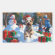 Adesivo Retangular Fio Fox Terrier nevando com chapéu de Natal