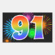 Adesivo Retangular Fireworks divertido + Padrão arco-íris "91" Número