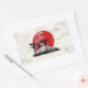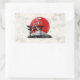 Esta design de autocolante retangular patriótica mostra a bandeira do Japão sobrepondo imagens do Monte Fuji, flores de cereja e um portão de torii... tudo com um efeito moderno e angustiante. Procure ID153 para ver outros produtos com este design.