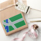 Vestido com uma design com a bandeira de Albany, Oregon. Uma bandeira verde, cinza e azul