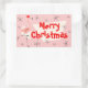 Adesivo Retangular Flamingo Santas Rosa, retângulo Feliz de Natal