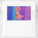 Um grupo vibrante de flores circula uma jovem chique numa explosão de cores.