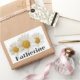 Adesivo Retangular Floral de Nome Personalizado do White Daisies