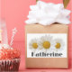 Três margaridas brancas com modelo para nome personalizado em cinzas muito escuras em fundo branco.