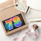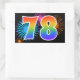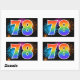 Este design de adesivo vibrante e divertido apresenta um padrão colorido inspirado em fogos de artifício celebratórios, juntamente com o número "78", tendo um padrão de gradação inspirado no arco-íris multicolor, sobre um fundo de cor preta. Os adesivos como este poderiam talvez ser usados numa festa de comemoração dos setenta e oito anos de alguém, ou talvez de setenta e oito anos de casamento de um casal, ou de algum outro evento de setenta e oito anos. [~Z0000324]