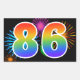 Este divertido e vibrante design de adesivo apresenta um padrão colorido inspirado em fogos de artifício comemorativos, juntamente com o número "86" tendo um padrão de gradiente multicolorido inspirado em arco-íris, sobre um fundo preto. Adesivos como este podem ser dados como um pequeno presente enquanto se comemora o octogésimo sexto aniversário de alguém, ou talvez para o octogésimo sexto aniversário de casamento de um casal, ou algum outro evento de número 86. [~Z0000324]