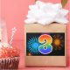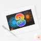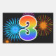 Este divertido e vibrante design de adesivo apresenta um padrão colorido inspirado em fogos de artifício comemorativos, juntamente com o número "3" apresentando um padrão de gradiente inspirado em arco-íris multicolorido, sobre um fundo de cor preta. Adesivos como este podem ser dados como um pequeno presente enquanto se comemora o terceiro aniversário de alguém, ou talvez para o terceiro aniversário de casamento de um casal, ou algum outro evento de número 3.
