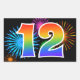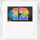 Este divertido e vibrante design de adesivo apresenta um padrão colorido inspirado em fogos de artifício comemorativos, juntamente com o número "12" apresentando um padrão de gradiente inspirado em arco-íris multicolorido, sobre um fundo de cor preta. Adesivos como este podem ser dados como um pequeno presente enquanto se comemora o décimo segundo aniversário de alguém, ou talvez para o décimo segundo aniversário de casamento de um casal, ou algum outro evento de número 12.