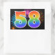 Este divertido e vibrante design de adesivo apresenta um colorido padrão inspirado em fogos de artifício comemorativos, juntamente com o número "58" tendo um padrão de gradiente multicolorido inspirado em arco-íris, sobre um fundo preto. Adesivos como este podem ser usados em uma festa comemorativa de aniversário de cinquenta e oito anos de alguém, ou talvez para o aniversário de cinquenta e oito anos de casamento de um casal, ou algum outro evento de 58º. [~Z0000324]