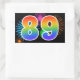 Este divertido e vibrante design de adesivo apresenta um padrão colorido inspirado em fogos de artifício comemorativos, juntamente com o número "89" tendo um padrão de gradiente multicolorido inspirado em arco-íris, sobre um fundo de cor preta. Adesivos como este podem ser usados em uma festa comemorativa de aniversário de oitenta e nove anos de alguém, ou talvez para o aniversário de casamento de oitenta e nove anos de um casal, ou algum outro evento de 89º. [~Z0000324]