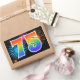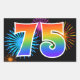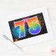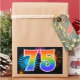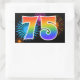 Este divertido e vibrante design de adesivo apresenta um colorido padrão inspirado em fogos de artifício comemorativos, juntamente com o número "75" tendo um padrão de gradiente multicolorido inspirado em arco-íris, sobre um fundo de cor preta. Adesivos como este podem ser dados como um pequeno presente enquanto se comemora o septuagésimo quinto aniversário de alguém, ou talvez para o septuagésimo quinto aniversário de casamento de um casal, ou algum outro evento de 75º aniversário. [~Z0000324]