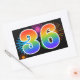 Este divertido e vibrante design de adesivo apresenta um padrão colorido inspirado em fogos de artifício comemorativos, juntamente com o número "36" apresentando um padrão de gradiente semelhante a um arco-íris multicolorido, em um fundo de cor preta. Adesivos como este podem ser usados em uma festa comemorando o trigésimo sexto aniversário de alguém, ou talvez para o trigésimo sexto aniversário de casamento de um casal, ou algum outro evento de 36º. [~Z0000324]