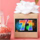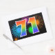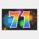 Este design de adesivo divertido e vibrante apresenta um padrão colorido inspirado em fogos de artifício comemorativos, junto com o número "71" apresentando um padrão de gradiente de arco-íris multicolorido, em um fundo preto. Adesivos como este podem ser dados como um pequeno presente ao celebrar o aniversário de setenta e um anos de alguém, ou talvez para o aniversário de casamento de setenta e um anos de um casal, ou algum outro evento de 71º. [~Z0000324]