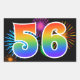 Este divertido e vibrante design de adesivo apresenta um colorido padrão inspirado em fogos de artifício comemorativos, juntamente com o número "56" apresentando um padrão de gradiente inspirado em arco-íris multicolorido, sobre um fundo preto. Adesivos como este podem ser dados como um pequeno presente ao comemorar o aniversário de cinquenta e seis anos de alguém, ou talvez para o aniversário de cinquenta e seis anos de casamento de um casal, ou algum outro evento de número 56. [~Z0000324]