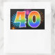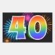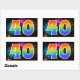 Este design de adesivo divertido e vibrante apresenta um padrão inspirado em fogos de artifício comemorativos coloridos, juntamente com o número "40" tendo um padrão de gradiente inspirado em arco-íris multicolorido, em um fundo de cor preta. Adesivos como este podem ser usados em uma festa comemorando o aniversário de quarenta anos de alguém, ou talvez para o aniversário de casamento de quarenta anos de um casal, ou algum outro evento de 40 anos. [~Z0000324]