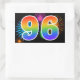 Este divertido e vibrante design de adesivo apresenta um colorido padrão inspirado em fogos de artifício comemorativos, juntamente com o número "96" tendo um padrão de gradiente multicolorido inspirado em arco-íris, sobre um fundo de cor preta. Adesivos como este podem ser usados em uma festa comemorativa dos noventa e seis anos de alguém, ou talvez para o nonagésimo sexto aniversário de casamento de um casal, ou algum outro evento de número 96. [~Z0000324]