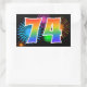 Este divertido e vibrante design de adesivo apresenta um padrão colorido inspirado em fogos de artifício comemorativos, juntamente com o número "74" tendo um padrão de gradiente multicolorido inspirado em arco-íris, sobre um fundo preto. Adesivos como este podem ser usados em uma festa comemorando o aniversário de setenta e quatro anos de alguém, ou talvez para o aniversário de casamento de setenta e quatro anos de um casal, ou algum outro evento de número 74. [~Z0000324]