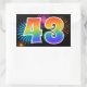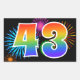 Este divertido e vibrante design de adesivo apresenta um padrão colorido inspirado em fogos de artifício comemorativos, juntamente com o número "43" tendo um padrão de gradiente inspirado em arco-íris multicolorido, sobre um fundo de cor preta. Adesivos como este podem ser dados como um pequeno presente enquanto se celebra o quadragésimo terceiro aniversário de alguém, ou talvez para o quadragésimo terceiro aniversário de casamento de um casal, ou algum outro evento de número 43. [~Z0000324]
