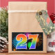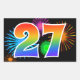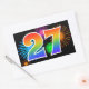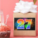 Este divertido e vibrante design de adesivo apresenta um colorido padrão inspirado em fogos de artifício comemorativos, juntamente com o número "27" tendo um padrão de gradiente multicolorido semelhante a um arco-íris, sobre um fundo preto. Adesivos como este podem ser usados em uma festa comemorando o vigésimo sétimo aniversário de alguém, ou talvez para o vigésimo sétimo aniversário de casamento de um casal, ou algum outro evento de número 27.
