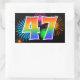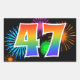 Este divertido e vibrante design de adesivo apresenta um colorido padrão inspirado em fogos de artifício comemorativos, juntamente com o número "47" apresentando um padrão de gradiente inspirado em arco-íris multicolorido, sobre um fundo de cor preta. Adesivos como este poderiam ser usados em uma festa comemorativa do quadragésimo sétimo aniversário de alguém, ou talvez para o quadragésimo sétimo aniversário de casamento de um casal, ou algum outro evento de número 47. [~Z0000324]