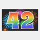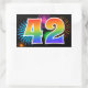 Este divertido e vibrante design de adesivo apresenta um padrão colorido de fogos de artifício comemorativos, juntamente com o número "42" apresentando um padrão de gradiente inspirado em um arco-íris multicolorido, sobre um fundo preto. Adesivos como este poderiam ser usados em uma festa que comemorasse o aniversário de quarenta e dois anos de alguém, ou talvez para o aniversário de casamento de quarenta e dois anos de um casal, ou algum outro evento de número 42. [~Z0000324]