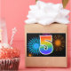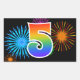 Este divertido e vibrante design de adesivo apresenta um colorido padrão inspirado em fogos de artifício comemorativos, juntamente com o número "5" apresentando um padrão de gradiente inspirado em arco-íris multicolorido, sobre um fundo de cor preta. Adesivos como este podem ser dados como um pequeno presente enquanto se comemora o quinto aniversário de alguém, ou talvez para o quinto aniversário de casamento de um casal, ou algum outro evento de 5º aniversário.
