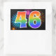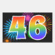 Este divertido e vibrante design de adesivo apresenta um padrão colorido inspirado em fogos de artifício comemorativos, juntamente com o número "46" apresentando um gradiente de cores inspirado em arco-íris multicolorido, sobre um fundo preto. Adesivos como este podem ser usados em uma festa comemorativa de 46º aniversário de alguém, ou talvez para o 46º aniversário de casamento de um casal, ou algum outro evento de 46º aniversário.