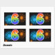 Este divertido e vibrante design de adesivo apresenta um colorido padrão inspirado em fogos de artifício comemorativos, juntamente com o número "6" tendo um padrão de gradiente multicolorido inspirado em arco-íris, sobre um fundo de cor preta. Adesivos como este podem ser dados como um pequeno presente enquanto se comemora o sexto aniversário de alguém, ou talvez para o sexto aniversário de casamento de um casal, ou algum outro evento de 6º aniversário.