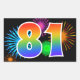 Este divertido e vibrante design de adesivo apresenta um padrão colorido inspirado em fogos de artifício comemorativos, juntamente com o número "81" apresentando um padrão de gradiente inspirado em arco-íris multicolorido, sobre um fundo de cor preta. Adesivos como este podem ser usados em uma festa comemorativa de aniversário de oitenta e um anos de alguém, ou talvez para o aniversário de casamento de oitenta e um anos de um casal, ou algum outro evento de 81º. [~Z0000324]