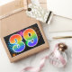 Este divertido e vibrante design de adesivo apresenta um padrão colorido de fogos de artifício comemorativos, juntamente com o número "39" tendo um padrão de gradiente multicolorido inspirado no arco-íris, sobre um fundo de cor preta. Adesivos como este podem ser usados em uma festa comemorando o trigésimo nono aniversário de alguém, ou talvez para o trigésimo nono aniversário de casamento de um casal, ou algum outro evento de número 39.