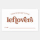 Essas etiquetas de tendências e de bôho apresentam teracotta retro tipografia em um simples fundo branco. Dizem "sobras", e você pode personalizar o nome do janto ou evento, como Ação de Graças. Há também uma linha de vazio para escrever manualmente o nome do seu convidado, para que você possa colocar um adesivo em um saco de sobra com o nome deles!