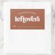 Essas etiquetas de tendências e de bôho apresentam tipografia retrô branca em um fundo de terracota. Dizem "sobras", e você pode personalizar o nome do janto ou evento, como Ação de Graças. Há também uma linha de vazio para escrever manualmente o nome do seu convidado, para que você possa colocar um adesivo em um saco de sobra com o nome deles!