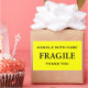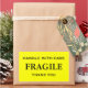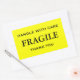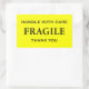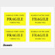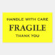 Vinhetas com: Frágil. Manipule com cuidado. Obrigado. Texto preto sobre fundo amarelo. Personalize com suas informações usando os modelos fáceis. A cor da fonte, o estilo da fonte, o tamanho da fonte e a cor amarela do plano de fundo são personalizáveis.
