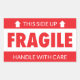 Garanta que seus pacotes cheguem em segurança com este adesivo de envio ousado "Frágil - Este Lado Para Cima - Manusear com Cuidado". Projetado em vermelho e branco de alta visibilidade com setas direcionais, este rótulo de advertência comunica claramente as instruções de manuseio adequadas para transportadoras e funcionários de armazém.