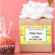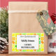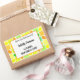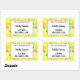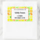 Um adesivo de panificação ou de conserva com um padrão colorido de frutas de citrinos de limões, limões, laranjas e fatias de citrinos em quadrados de branco, laranja, lacre e amarelo, para marmelada, geleias ou outras receitas.