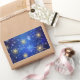 Adesivo Retangular Fundo Azul XMAS com Flocos de Neve Ouro