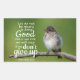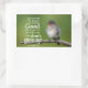 Um adesivo inspirador retrata um adorável passarinho bebê em um galho de árvore e apresenta a Bíblia Verse Galatianos 6:9 "Não nos cansemos de fazer o bem: porque em tempo oportuno nós colheremos se não desistirmos."_