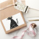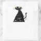 Gato de desenho gordo preto. Caráter bonito de gato. Versão em aflição.