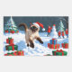 Adesivo Retangular Gato Siamês Correndo em Neve com Chapéu de Natal