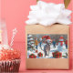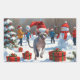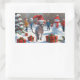 Adesivo Retangular Gato Sphynx correndo em neve com chapéu de Natal