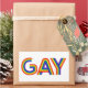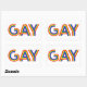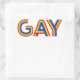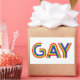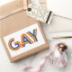 Este trabalho de arte apresenta a palavra Gay em uma fonte colorida do arco-íris.