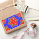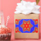 Um atraente padrão geométrico predominantemente em tons de vermelho e azul, mas também com amarelo, ciano, roxo e verde.