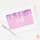 Adesivo Retangular Glitter cor-de-rosa goteja o nome roxo