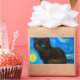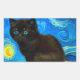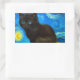 Vinhetas com um gato Van Gogh no estilo da Noite Estrelada! Um gatinho negro e fofo permeia uma mesa contra um céu azul e uma lua amarela. Um presente perfeito para amantes de gatos e colecionadores de arte holandeses!