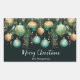 Elegant Christmas holiday rectangular stickers feature pine branches, green and gold Christmas ball ornaments and ribbons on a deep green background with your details in chic lettering, perfect for your festive holiday gathering favors or for your gift-giving. MATCHING items in our collection.