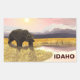 Uma pintura digital de um urso pardo se aproximando de uma lagoa enquanto o sol desce sobre montanhas distantes. Também está presente a leitura do texto "IDAHO".